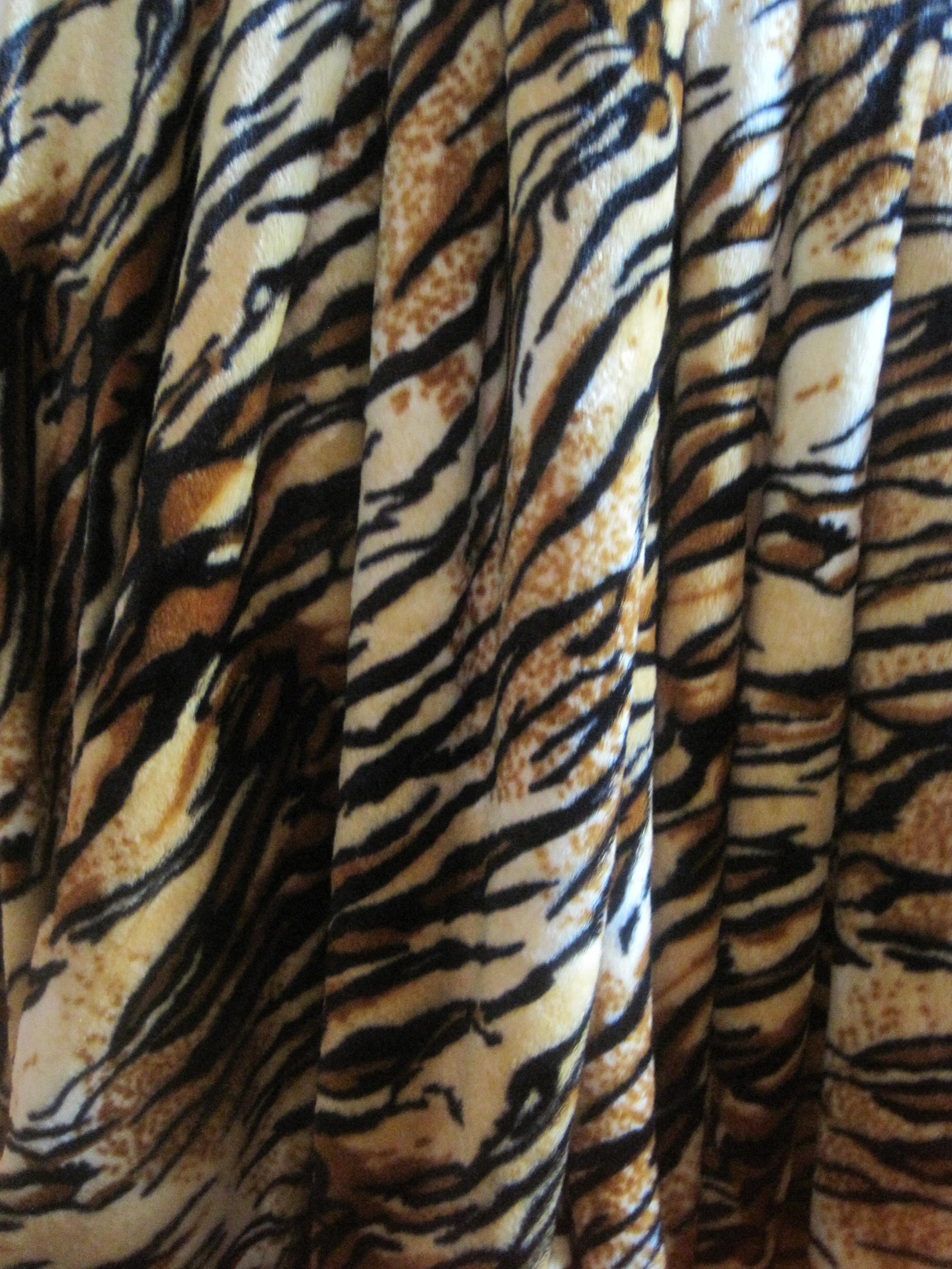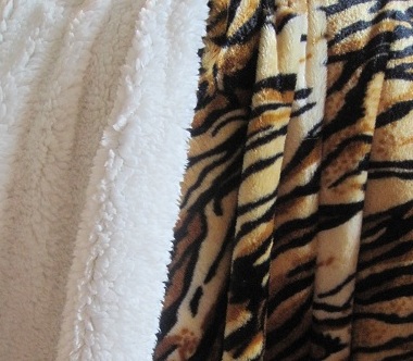 75" x 88" cozy queen size throw with faux tiger on front and sherpa